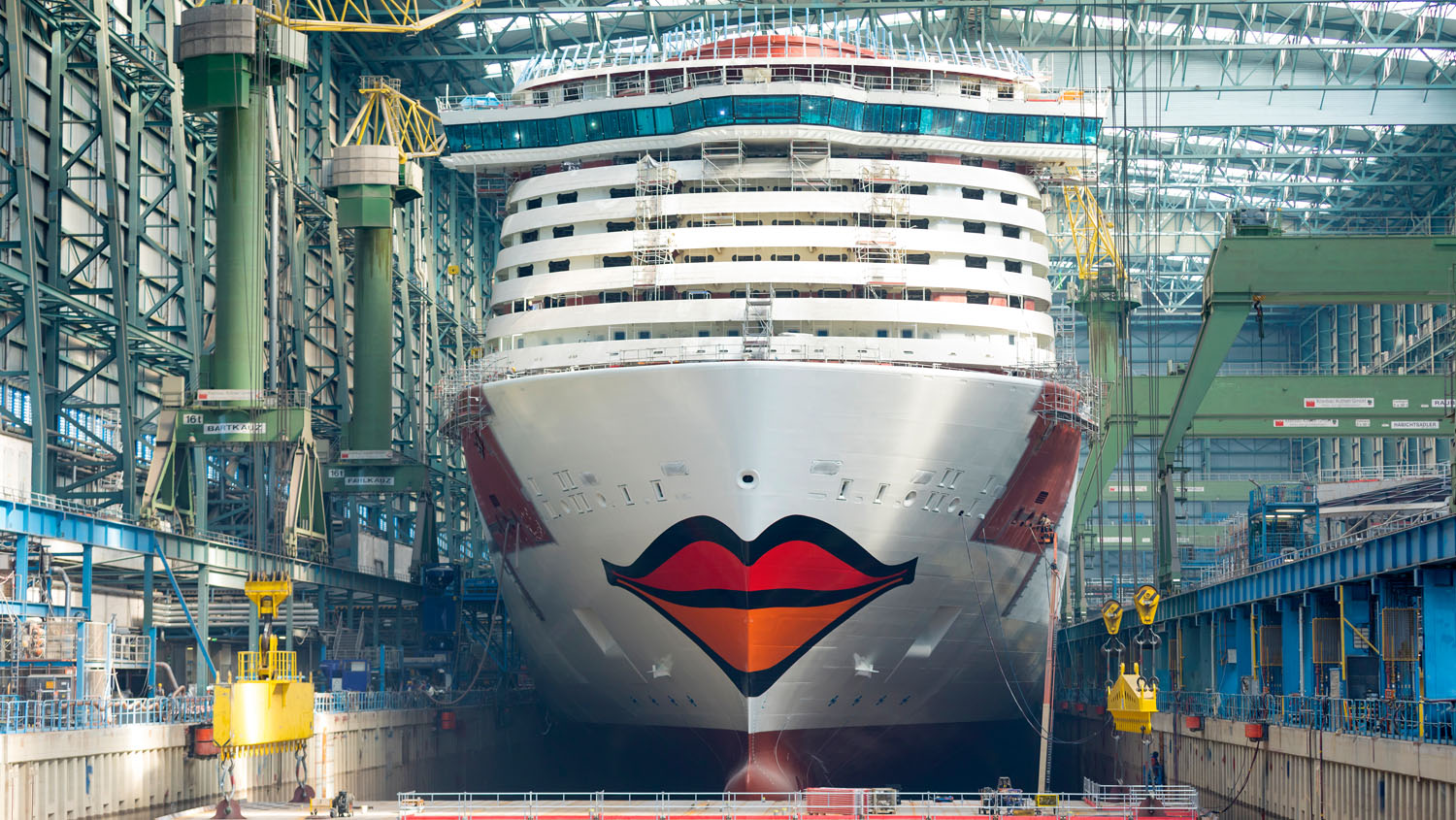Das jüngste Mitglied der AIDA Flotte wird ab Dezember 2018 über die Weltmeere fahren. Ihr Lächeln erhält AIDAnova derzeit in der Meyer Werft in Papenburg. Die Außenbemalung mit Kussmund, Auge und Lidstrich sowie Welle wird wie bei allen AIDA Schiffen nach der Idee des Rostocker Künstlers Feliks Büttner umgesetzt.