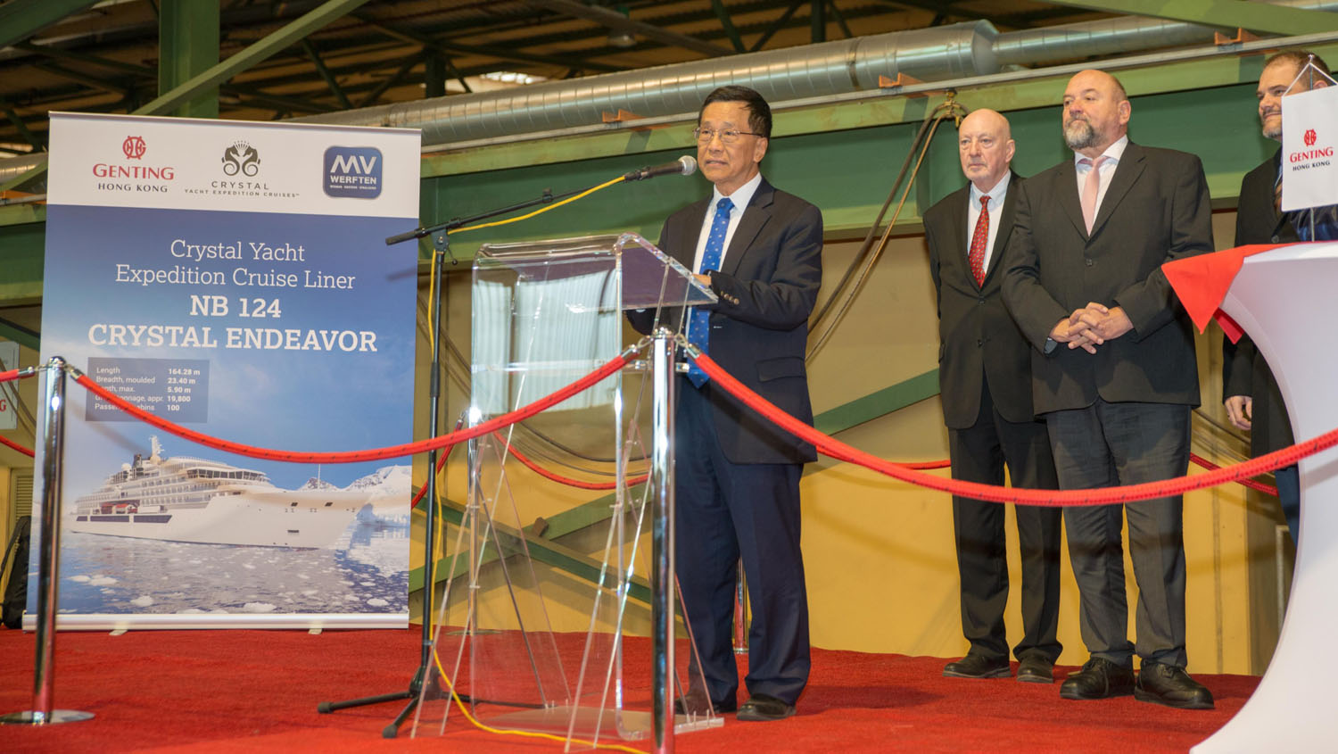 „Die Crystal Endeavor ist ein wirklich außergewöhnliches Schiff. Wir sind stolz, dieses Projekt umsetzen zu dürfen und freuen uns ganz besonders, heute in Stralsund wieder mit dem Schiffbau loszulegen und somit Hunderte neuer Jobs zu schaffen“, so Jarmo Laakso, CEO von MV Werften.