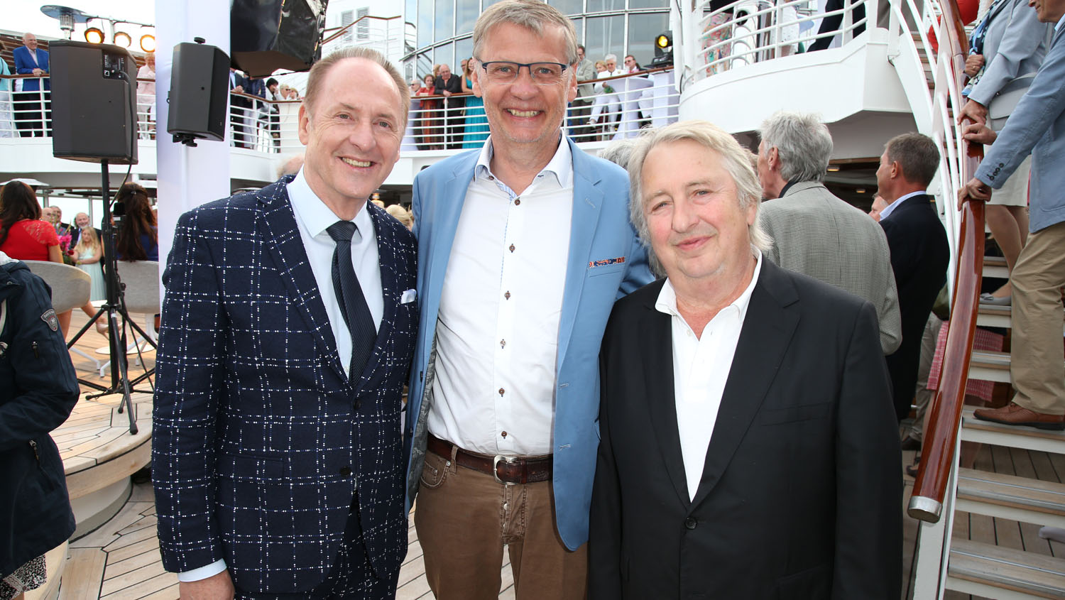 Karl J. Pojer , Günther Jauch, Herbert Seckler. Foto: Hapag-Lloyd Cruises/Peoplefotograf Marko Greitschus