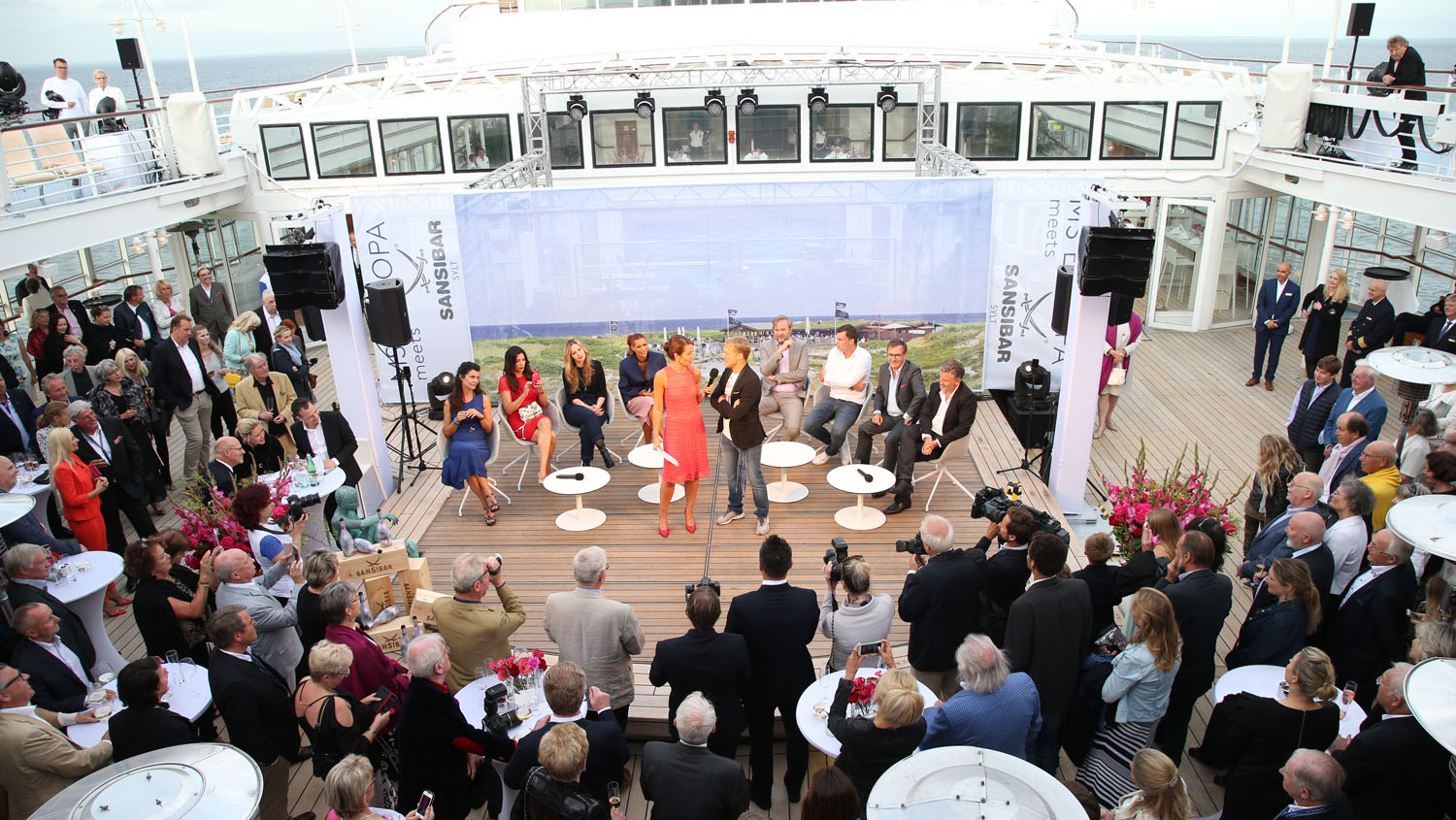 Vor Sylt lud Hapag Lloyd zum 15. Mal zusammen mit dem Sylter Gastronom Herbert Seckler Promis und Kreuzfahrer zur MS Europa meets Sansibar 2017 ein. Neben der Dichtkunst von Prominenten war die Partynacht mit Right Said Fred der Höhepunkt der traditionellen Kreuzfahrt.