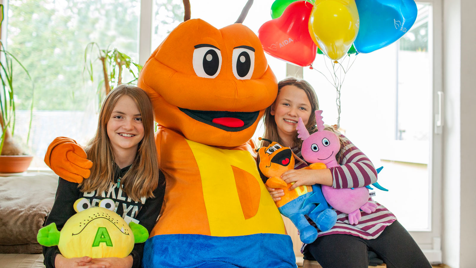 Der 3. Platz geht an Ella aus Neusäss (9 Jahre) mit „Nelli“. Auch sie erhält ihren gezeichneten Clubbie-Freund als echtes Kuscheltier sowie die vier AIDA Clubbies – fünf Freunde zum Liebhaben.