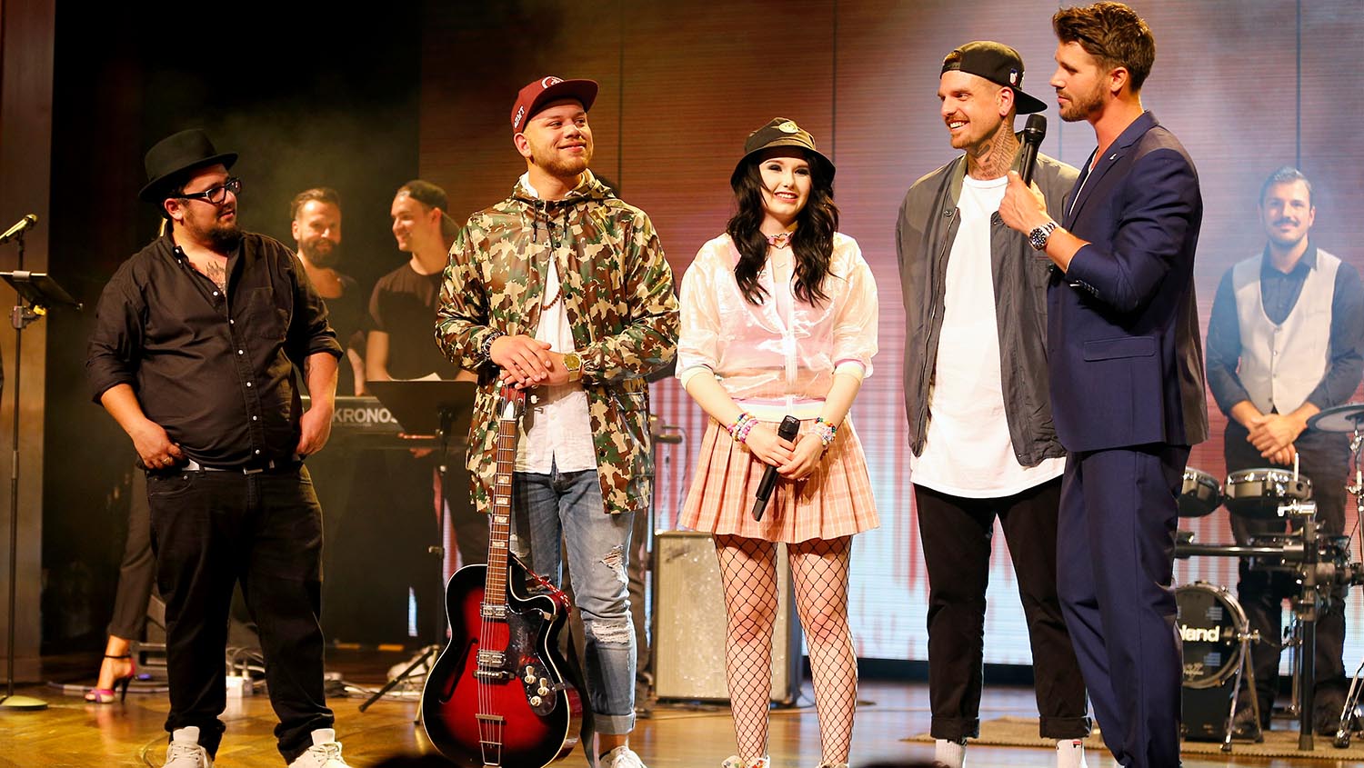 „Viel Spaß!“, schob Lena Gercke noch ein und schlug nach einer weitausholenden Bewegung mit der Hand auf den Buzzer. Der Taufmechanismus löste aus und dann gab es einen dumpfen Knall, aber die Flasche ging nicht zu Bruch. Während die Taufgesellschaft sich schon in den Armen lag und klatschte war den Facebook-Fans klar, dieser Teil des Festaktes muss wiederholt werden. Ganze zehn Minuten dauerte es, bis die Flasche wieder hochgezogen und entsprechen präpariert war. Erneut betraten Taufpatin und Kapitän die Bühne.