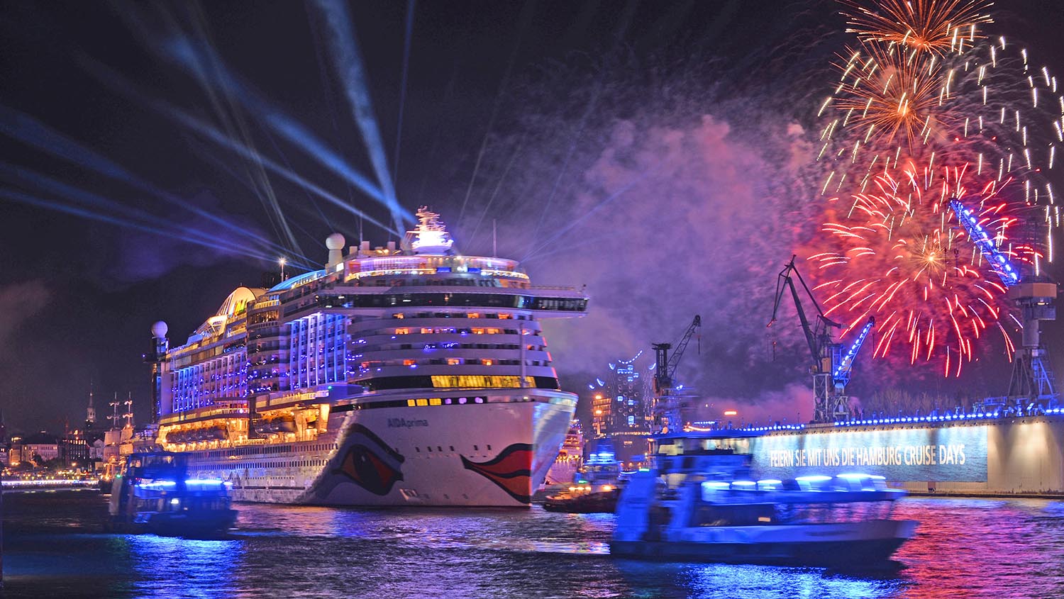 Bei Sonnenschein und schönster Hafenatmosphäre fanden bereits die Manöver auf der Elbe zur Paradenaufstellung begeisterte Zuschauer und um 21.15 Uhr war es soweit: Die Formation stand, und die Parade setzte sich in Bewegung. Begleitet von Barkassen, Seglern und Fahrgastschiffen zogen AIDAprima, Norwegian Jade, Europa2 , Europa und MSC Preziosa die Elbe abwärts durch den blau illuminierten Hafen des Blue Port Hamburg. Jedes Schiff wurde mit einem individuellen Feuerwerk verabschiedet, dass mit stimmungsvoller Musik untermalt und durch den Schauspieler Marek Erhardt moderiert wurde.