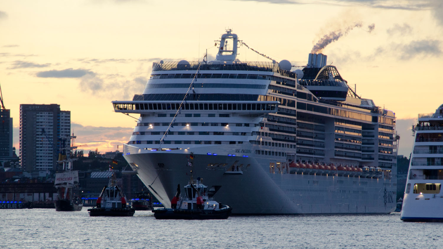 Die MSC Preziosa auf dem Weg zur Start-Position im Hafen. Foto: bergeest