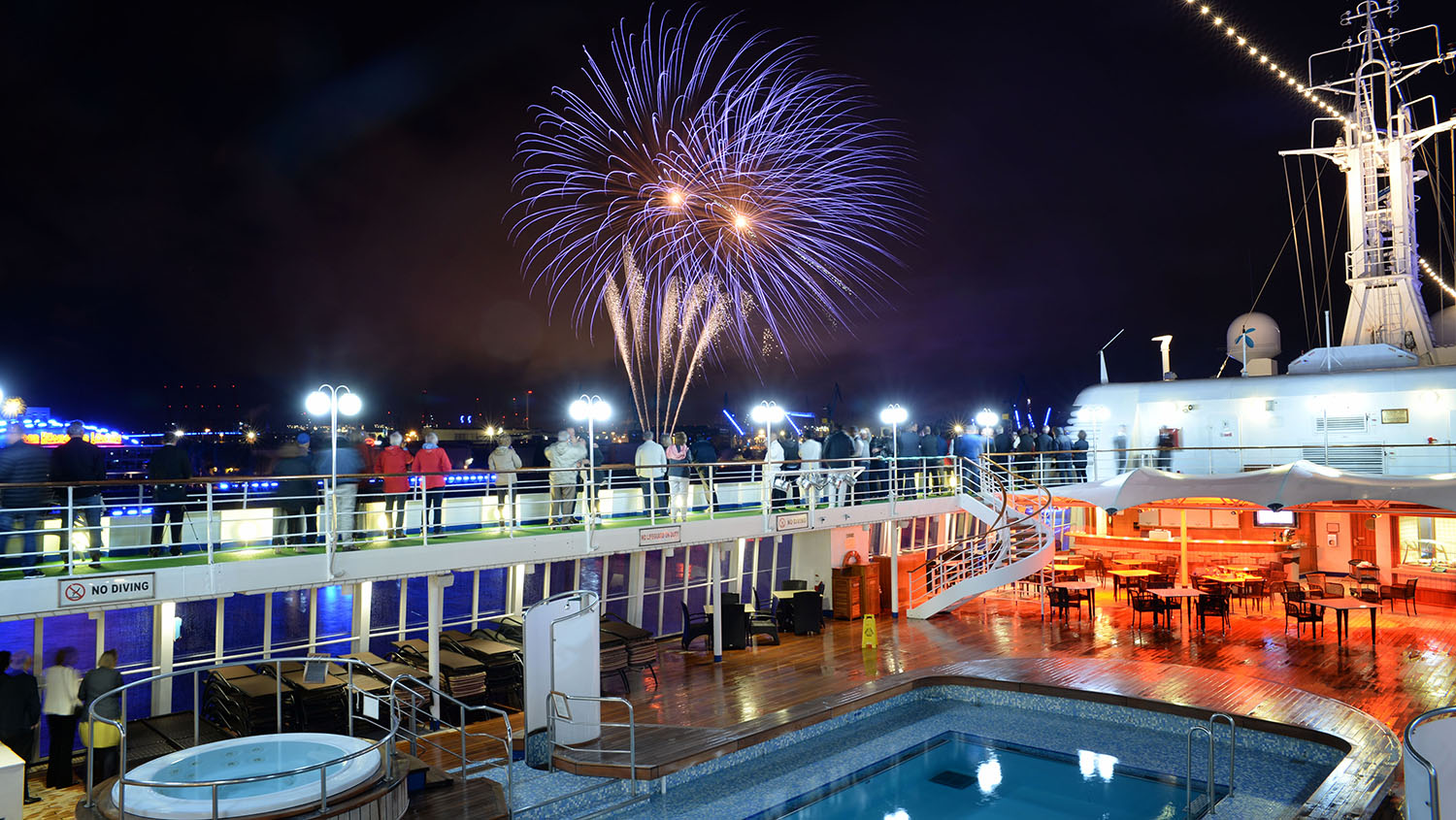Bereits am Freitag gab es ein Feuerwerk für die Silver Wind. Foto: André Lenthe