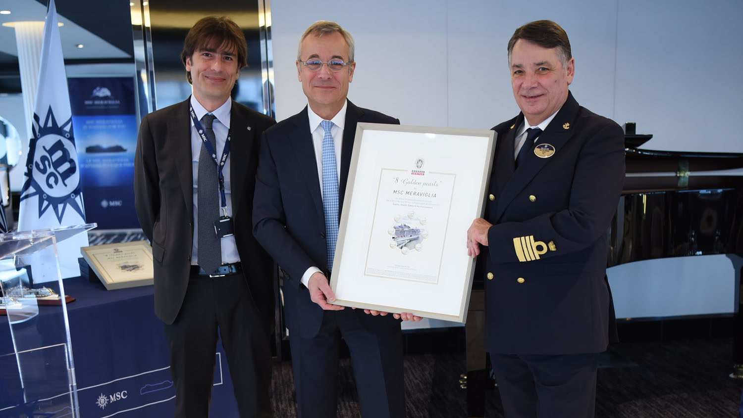 Philippe Donche-Gay, President Marine & Offshore, Bureau Veritas erklärt: „MSC hat gezeigt, wie sehr es dem Unternehmen am Herzen liegt, den Einfluss auf die Umwelt so gering wie möglich zu halten. Sein ungebremster Einsatz für die Umwelt muss lobend erwähnt werden. Mit den umweltschonenden und nachhaltigen Technologien, die auf der MSC Meraviglia eingesetzt werden, führt das Schiff die Kreuzfahrtbranche an. Die Auszeichnung „8 Golden Pearls“ von Bureau Veritas spiegelt dieses Engagement für die stetige Weiterentwicklung der Umweltleistungen wider.“