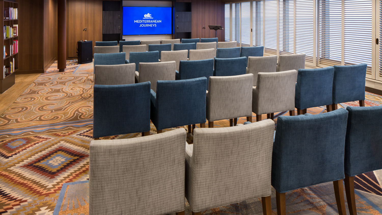 Das EXC wird die Passagiere noch besser auf ihren Landgang vorbereiten und dazu eine Vielzahl von Angeboten bereithalten. Dazu wurde auf dem SChiff das bisherige Crow’s Nest umgebaut, um einen neuen Ort für die Gäste zu schaffen. Hier finden sich nun interaktive Bildschirme und eine virtuelle Brücke. Hier werden in Echtzeit Daten von der tatsächlichen Brücke des Schiffes übertragen und so ein ganz besonderes Kreuzfahrterlebnis von einem einzigartigen Aussichtspunkt geboten. Damit bietet sich eine komplett neue Möglichkeit zur Einstimmung auf das nächste Ziel.