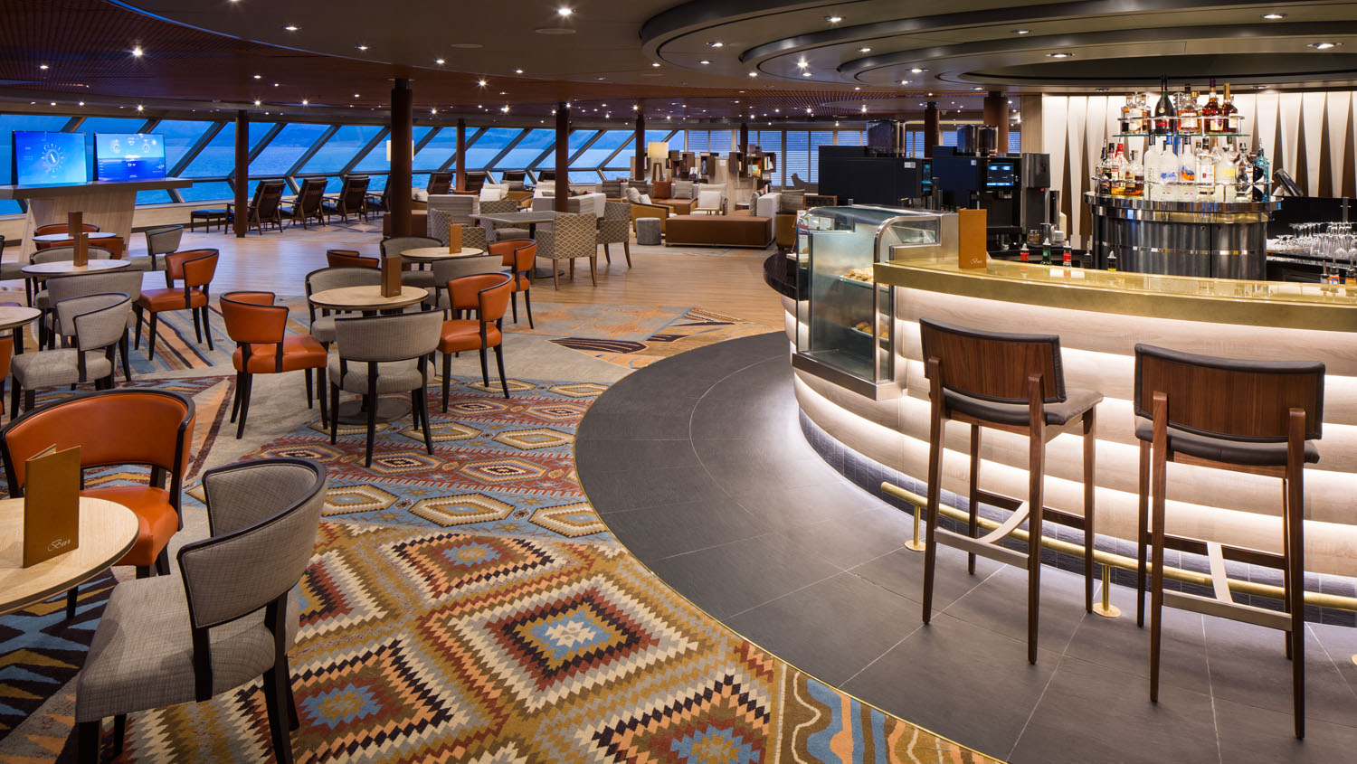 EXC Cafe im Crow’s Nest mit Virtueller Brücke. Foto: Holland America Line