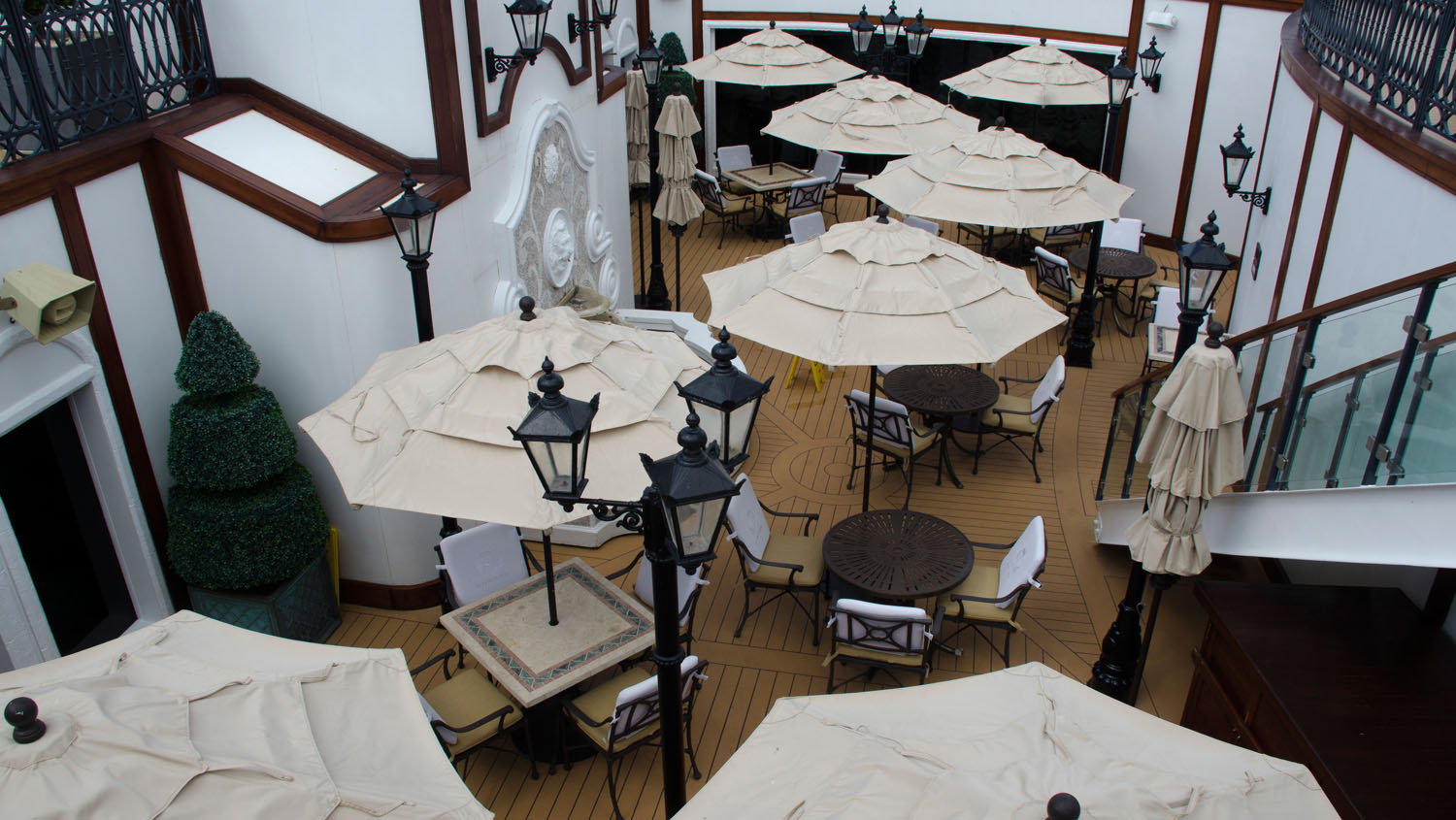 Auf Deck 3 befinden sich die obere Ebene des Britannia Restaurants und eine Vielzahl von Shops. Auffallend sich die hochwertigen Teppiche auf dem Boden der öffentlichen Bereiche, die in jedem Bereich ihrer Umgebung angepasst sind. Über den Kabinendecks auf Deck 9 befinden sich viele weitere öffentliche Räume, wie das zur Mittagszeit beliebte Lido-Restaurant und verschiedene Pools im Außenbereich. Ganz oben auf Deck 11 findet sich auch der exklusive Suitenbereich für die Gäste vom Princess Grill und Queens Grill mit einem wunderschönen Courtyard.
