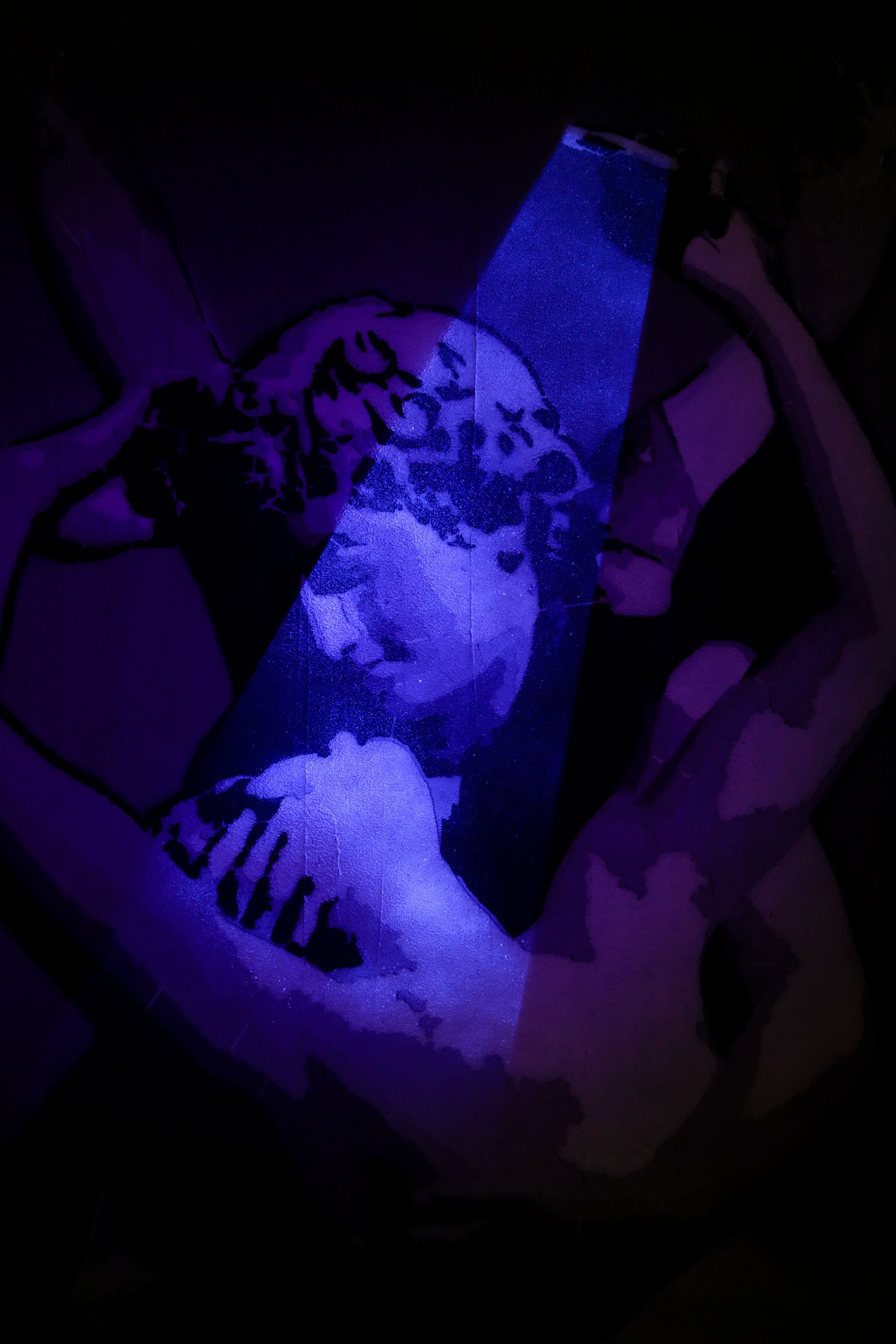 Das zentrale Werk dieser Ausstellung ist seine eigene Interpretation des bekanntes Werkes „Amor & Psyche“, die die Liebe im heutigen Zeitalter beschreibt, in dem alles per Handy mit einem Selfie festgehalten wird, festgehalten werden muss. Dieses Kommunikationsmittel ermöglicht es aber im Positiven auch eine Liebe über eine größere Distanz zu entwickeln, aufzubauen und festzuhalten. Eine Fernbeziehung zu führen, bei der man sich nicht sehen und trotz allem sehr nahe sein und seine Gefühle austauschen kann.