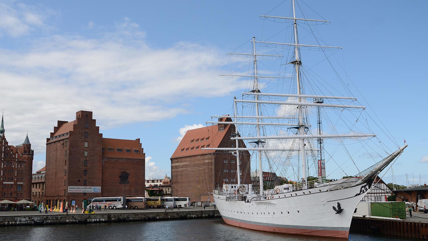 In Stralsund liegt die Katharina von Bora direkt neben dem Segelschiff Gorch Fock. Foto: lenthe/touristik-foto.de