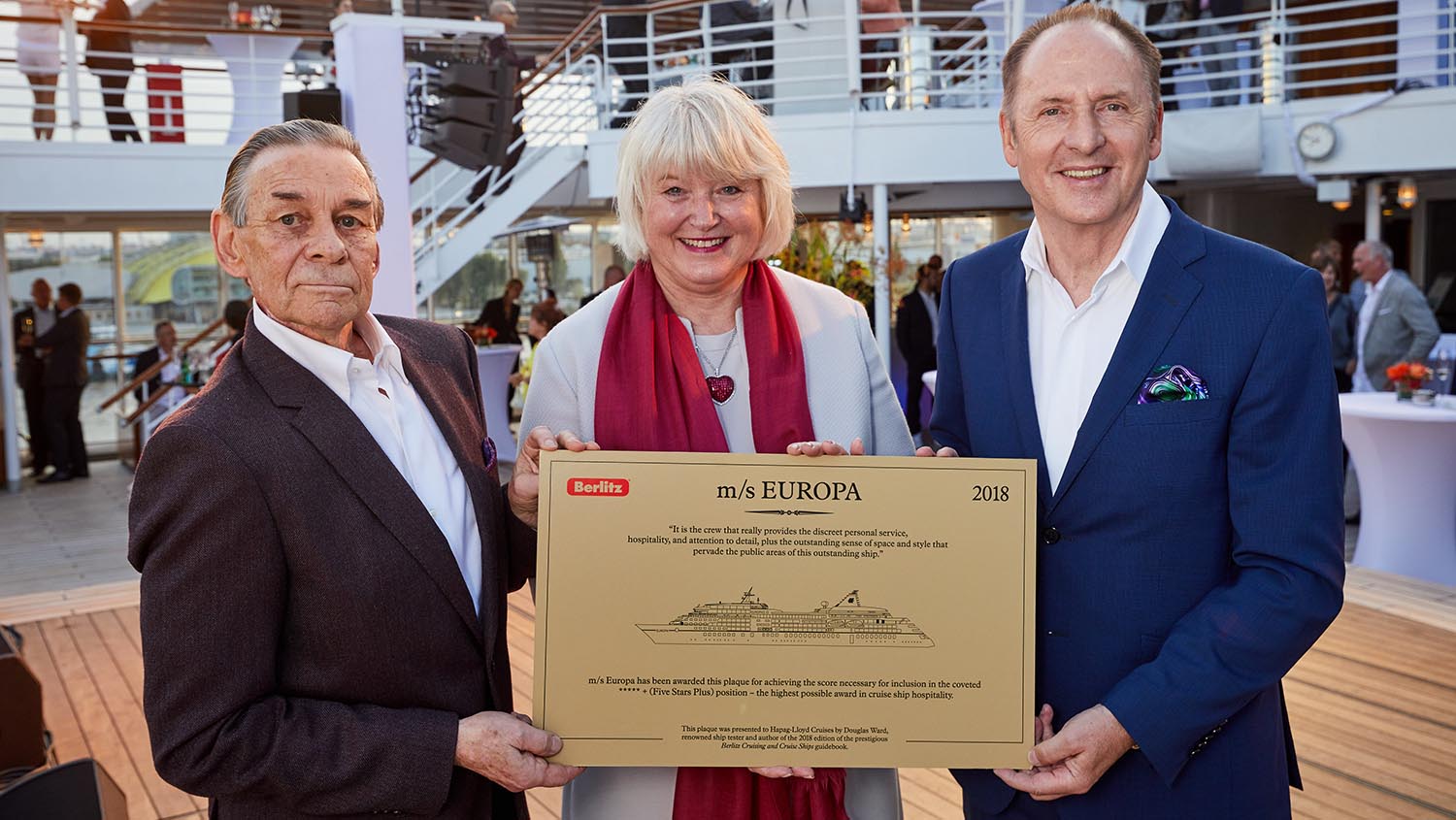 Kreuzfahrtexperte Douglas Ward verlieh MS Europa zum 18. Mal in Folge die Auszeichnung Fünf-Sterne-plus des renommierten Kreuzfahrtguides „Berlitz Cruising & Cruise Ships 2018“.