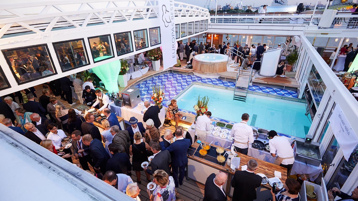 Das Event der Gourmet-Elite „Europas Beste“ an Bord der MS Europa fand am 25. August 2016 zum 13. Mal statt. Erstmals veranstaltete Hapag Lloyd Cruises das Abendevent im Hamburger Hafen.