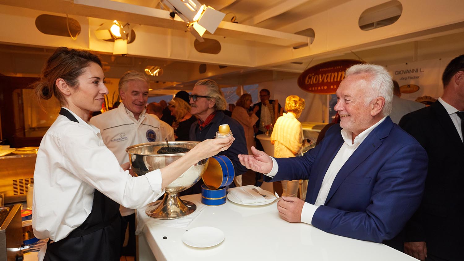 Die rund 600 Passagiere und geladenen Gäste an Bord flanierten an den Live-Cooking Stationen und genossen die vielfältigen Kreationen. So gab es bei Nico Burkhardt beispielsweise „Portobello mit Trüffel, Nussbutterschaum und gebackenen Kartoffeln“. Marco Müller präsentierte „Grünen Wacholder und Schweinekinn mit Gartenkohlrabi“. Die Confiserie Teuscher kredenzte zum Nachtisch ausgefallene Trüffelsorten wie „Champagne Truffes“ oder „Lavendel Truffes“. “Carrotcake reconstructed” und “Schokolade trifft Karibik“ mit Balli Kakao, Passionsfrucht, Mango und Crumbel gab es dagegen von der Patisserie Walter.