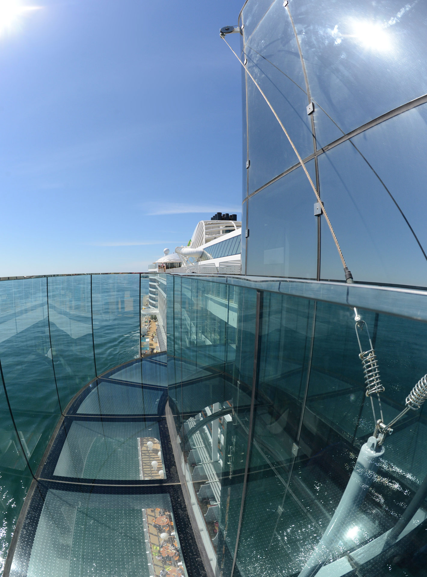 Nichts für Menschen mit Höhenangst. Der Skywalk auf der AIDAprima. Foto: lenthe/touristik-foto.de