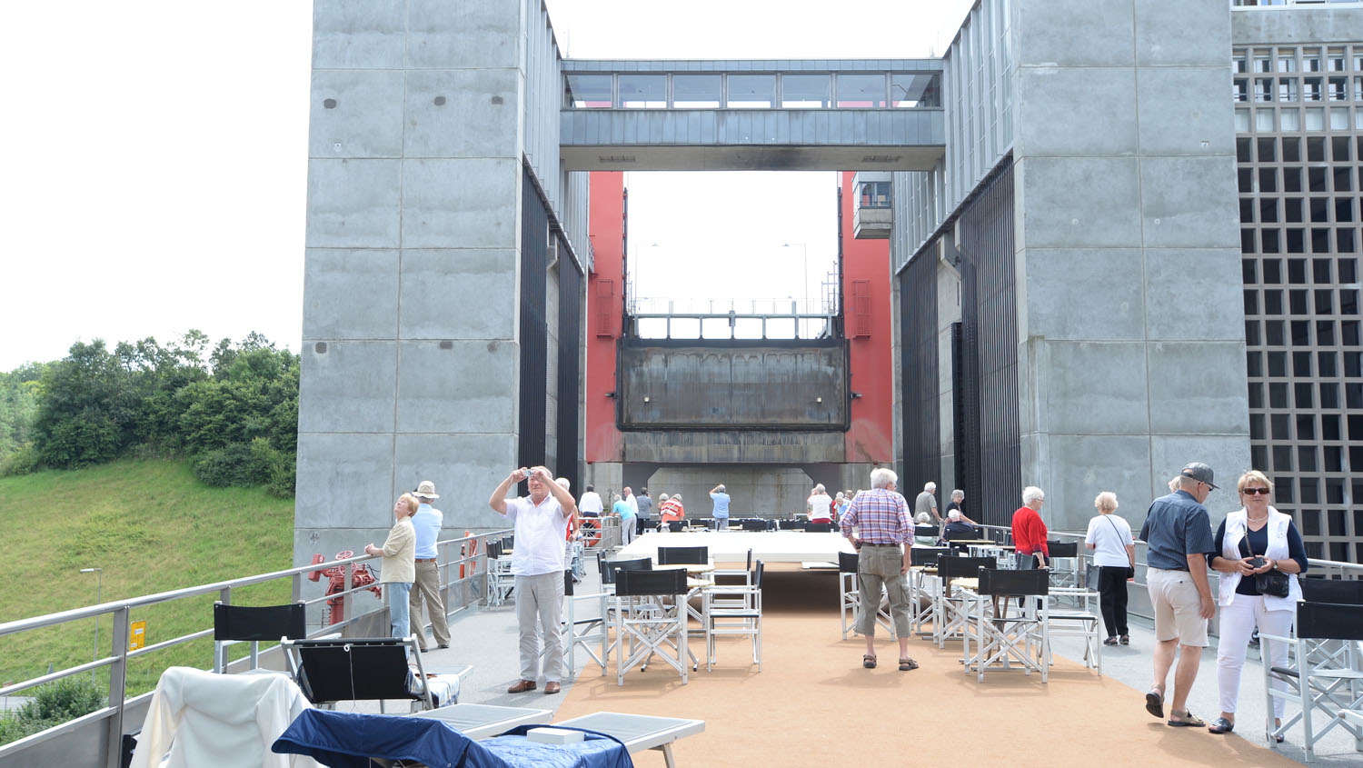 Mit dem Flussschiff Saxonia im Schiffshebewerk
