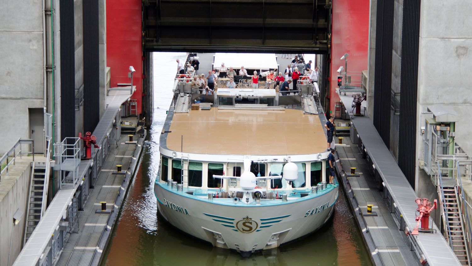 Mit dem Flussschiff Saxonia im Schiffshebewerk