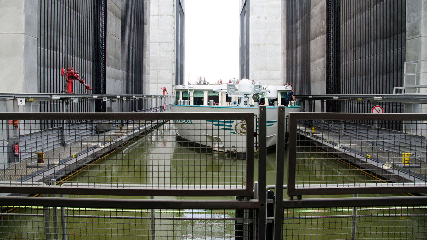 Mit dem Flussschiff Saxonia im Schiffshebewerk