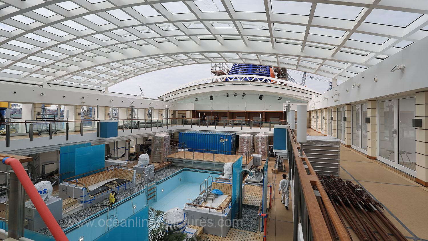 Sonnendecks und Pool Europa 2 in der Werft. Foto: Oliver Asmussen/oceanliner-pictures.com