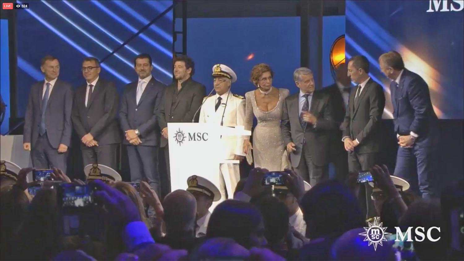 Sophia Loren brach die Champagnerflasche am Bug der MSC Meraviglia. Foto: Screenshot MSC