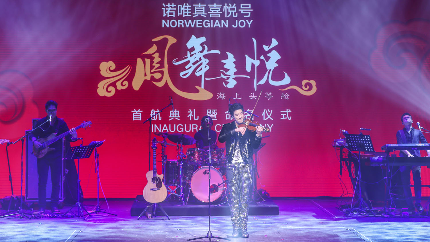 Wang Leehom, Taufpate und Markenbotschafter der Norwegian Joy, beendete die Zeremonie mit einem Auftritt, der die chinesischen und westlichen Gäste gleichermaßen begeisterte.