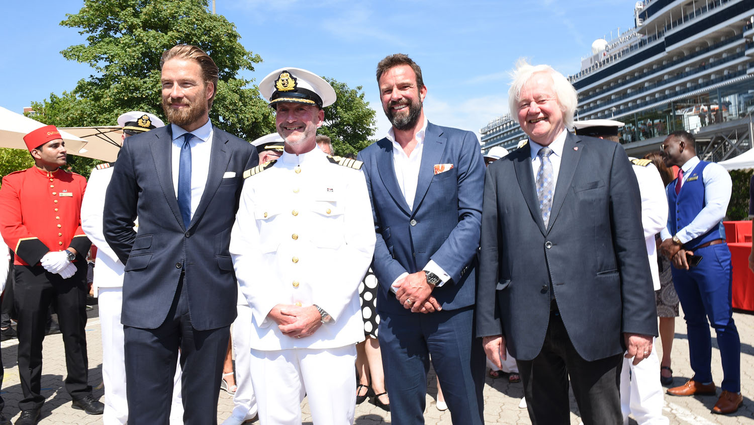 Bereits als die Queen gegen 9 Uhr am Anleger 27 festmachte, wurde sie von zahlreichen Schaulustigen entlang der Kieler Förde begrüßt. Bis 17 Uhr lag das Schiff im Hafen und diente als Kulisse für das The Queens Village, das die Reederei eigens zur Feier des Tages im Norden der Terminalfläche an der Grenze zur Seeburg und Kiellinie errichtet hatte. Dort fand auch die offizielle Plaque & Key Zeremonie statt, bei der Stadtpräsident Hans-Werner Tovar, Port of Kiel-Geschäftsführer Dr. Dirk Claus sowie Jens B. Knudsen, Geschäftsführender Gesellschafter Sartori & Berger, die Kieler Erstanlaufplakette an Kapitän Simon Love übergaben.