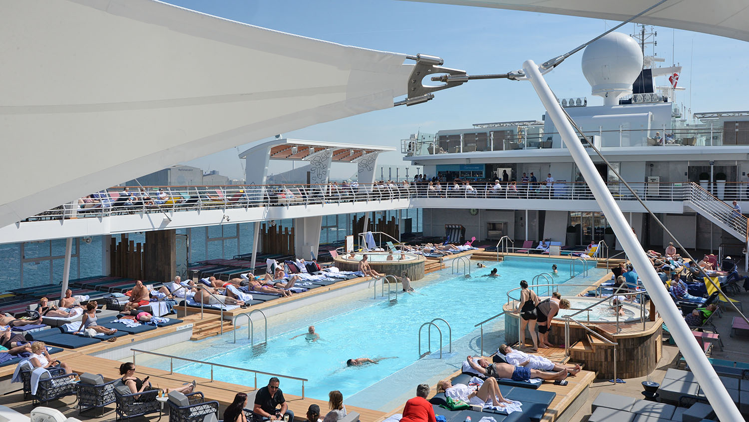 Viel leben auf dem Sonnendeck der Mein Schiff 6. Foto: lenthe/touristik-foto.de