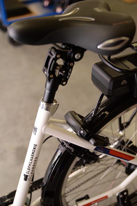 Ganz neu: Ein E-Bike für die Hamburger Kulturbehörde mit dem Design der Elbphilharmonie. Foto: lenthe/touristik-foto.de