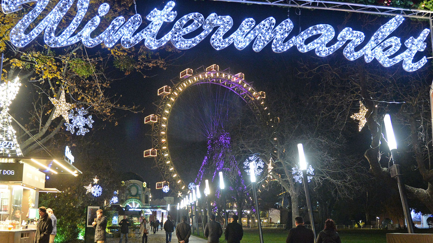 Nur fünf Minuten sind es zum weltberühmten Wiener Prater. Hier gibt es ebenfalls einen Weihnachtsmarkt und der ist am Abend samt Riesenrad wunderschön beleuchtet.