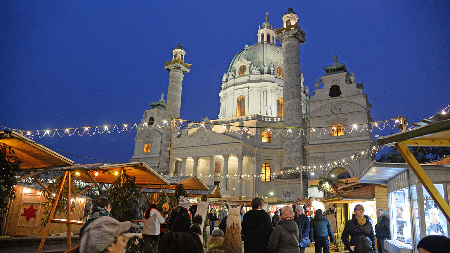 Der Art Advent ist am Karlsplatz, direkt vor der Karlskirche aufgebaut. Foto: André Lenthe