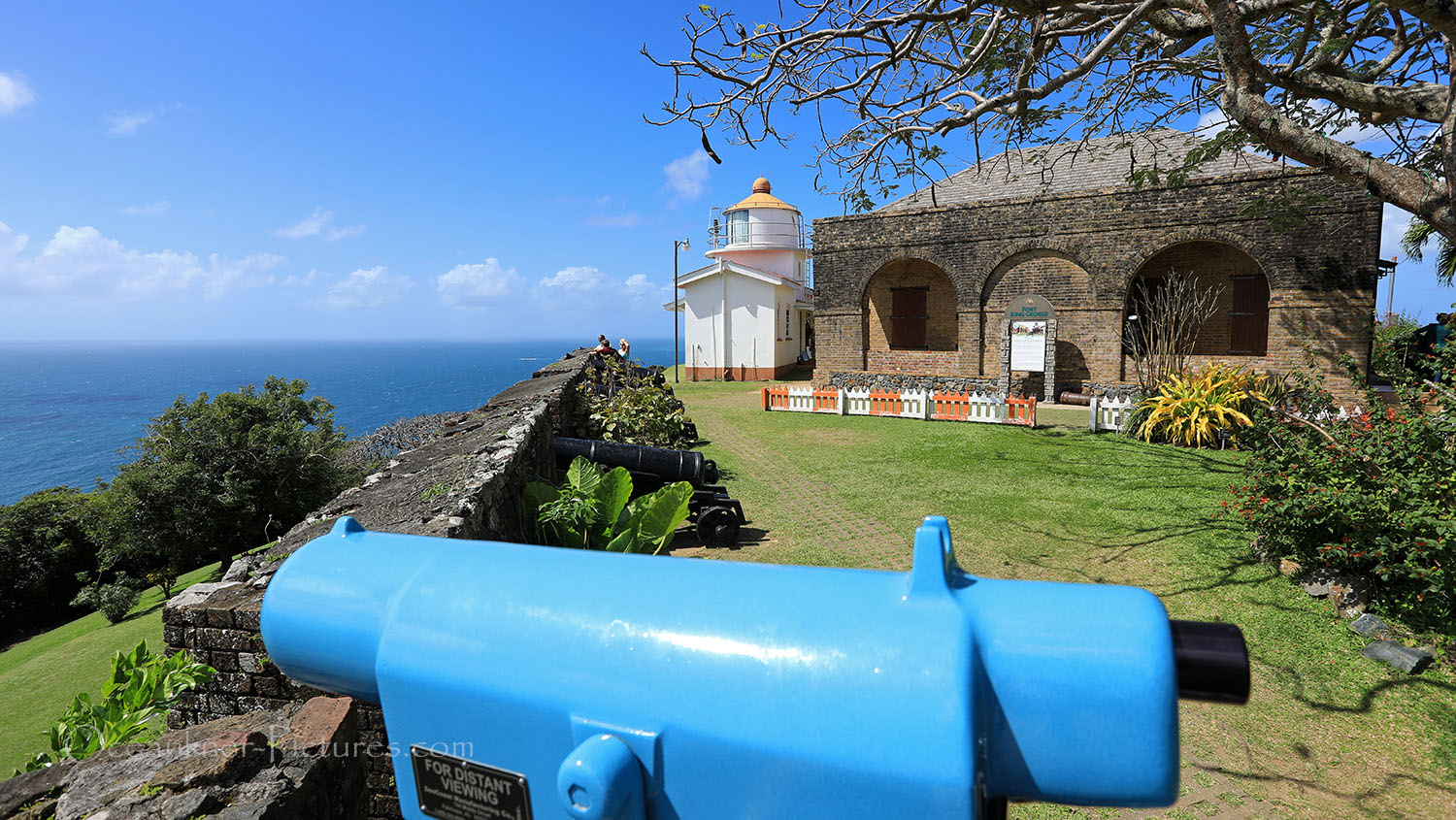 Das im Jahr 1777 erbaute Fort hat eine wechselvolle Geschichte hinter sich, nannte sich zu Beginn auch Fort Castries, beherbergte einst ein Gefängnis und ein Krankenhaus. Im Jahr 1958 wurde ein Leuchtturm errichtet, 1965 entstand eine schöne Parkanlage und seit einigen Jahren gehört Fort King George zum festen Programmpunkt bei Inselrundfahrten. Eines der Gebäude auf dem sehr gepflegten Gelände beherbergt heute das Nationalmuseum. Immer wieder eröffnet sich von unterschiedlichen Stellen aus ein grandioser Blick über die Insel und den Atlantischen Ozean. Da ich heute ausreichend Zeit habe, erkunde ich das gesamte Gelände und genieße die Zeit, nachdem die Touristenbusse wieder abgefahren sind.