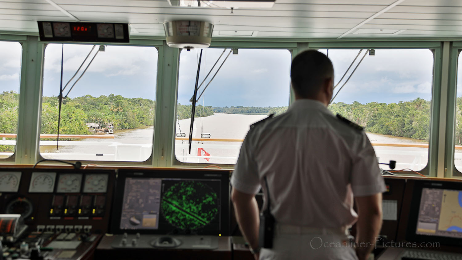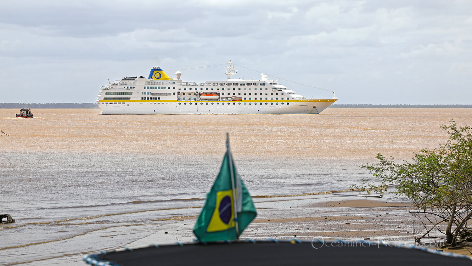 Um 04:00 Uhr in der Früh überquert die MS Hamburg, von den meisten Gästen unbemerkt, das erste Mal während dieser Kreuzfahrt den Äquator in nördlicher Richtung, um 06:00 Uhr ein weiteres Mal in südlicher Richtung. Grund sind einige Inseln, die im Amazons-Delta liegen und nördlich umrundet werden müssen, um nach Macapá zu gelangen. Der Amazonas ist der mit Abstand wasserreichste Fluss der Erde und mit einer Länge von 6.448km nach dem Nil (6.852 km) der zweitlängste.