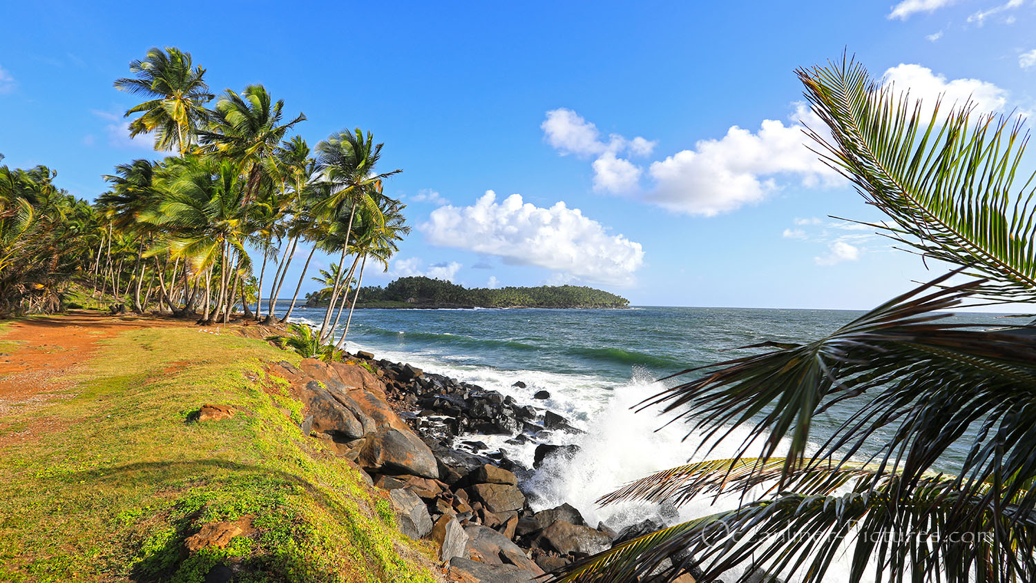 Da beim damaligen Besuch dicke Regenwolken über der Südküste von Tobago hingen, gibt es ein mir bisher unbekanntes Fleckchen auf der Insel, den Pigeon Point Heritage Park. Heute sind die Wetterbedingungen ideal und somit stehen meine Planungen fest. Am Vormittag besuche ich zum zweiten Mal die imposante Anlage vom Fort King George und am Nachmittag werde ich den Pigeon Point erkunden. Die Insel Tobago ist 40,7 km lang und 11,9 km breit, die höchste Erhebung ist der Pigeon Peak mit 576 m. Das Bild der Insel ist geprägt von tropischen Regenwäldern bzw. von einem flachen Südwesten und einem felsigen Norden. Die stark zerklüftete Küstenlinie ist von kleinen Buchten unterbrochen.