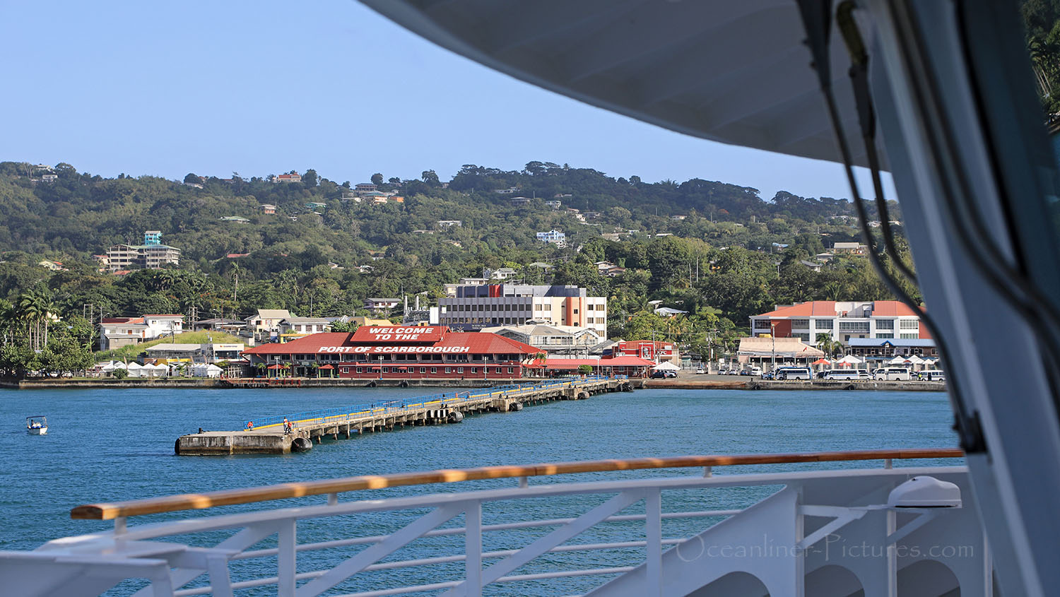 Nach einem erholsamen Seetag kommt am frühen Morgen die Küste der Insel Tobago in Sicht. Die MS Hamburg wird im Hafen der Inselhauptstadt Scarborough festmachen. Da Tobago bereits im Jahr 2015 im Routenplan der MS Hamburg enthalten war, werde ich heute entsprechend keine erneute Inselrundfahrt unternehmen. Meine Planungen versprechen trotzdem einen abwechslungsreichen Tagesverlauf. Link zum Reisebericht von 2015 mit Inselrundfahrt über Tobago.