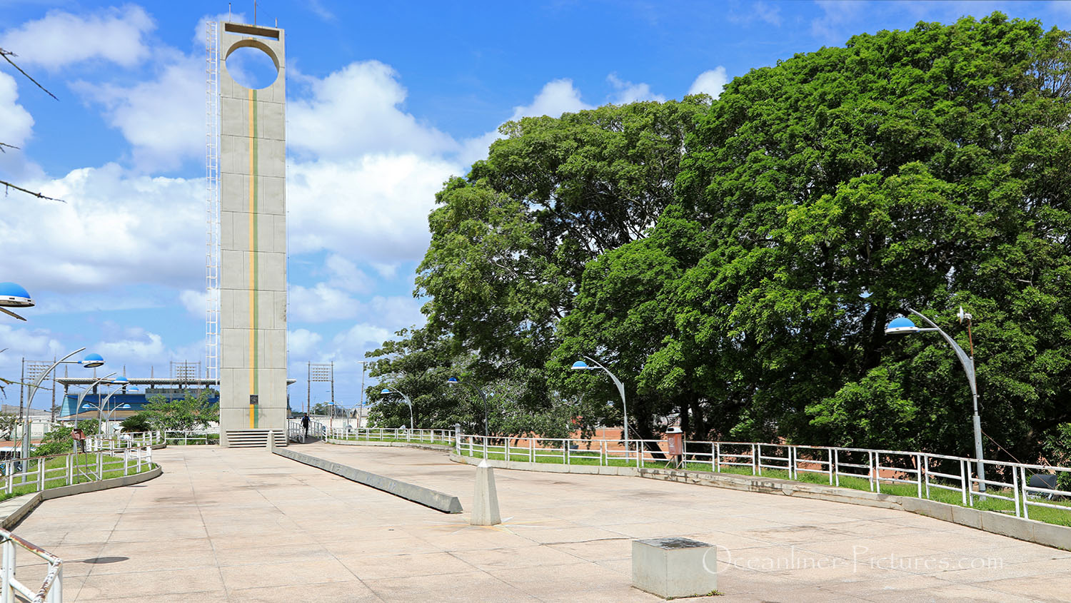 Neben Städten in Indonesien, Kenia, Ecuador und dem Kongo ist die brasilianische Stadt Macapá eine der ganz wenigen, die direkt von der 40.075 km langen Nulllinie durchzogen wird. Das 30m hohe Marco Zero Denkmal befindet sich auf einer kleinen Terrasse. Es besteht aus einem Turm mit einer Sonnenuhr in Form eines Kreises an der Spitze und einer Linie am Boden. Zweimal im Jahr, zwischen dem 20. Und 21. März sowie zwischen dem 22. und 23. September scheint die Sonne genau durch den Kreis und markiert den Äquator auf besondere Weise in Form eines Lichtstrahls. Dieses Glück habe ich heute leider nicht, doch auch die Äquatorlinie aus Metall ist beeindruckend. Mit nur einem Sprung stehe ich entweder auf der Nordhalbkugel oder auf der Südhalbkugel. Das Erlebnis bzw. dieser symbolische Sprung über den Äquator ist aus meiner Sicht definitiv einen Anlauf der Stadt Macapá wert!