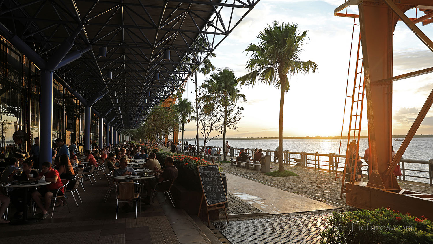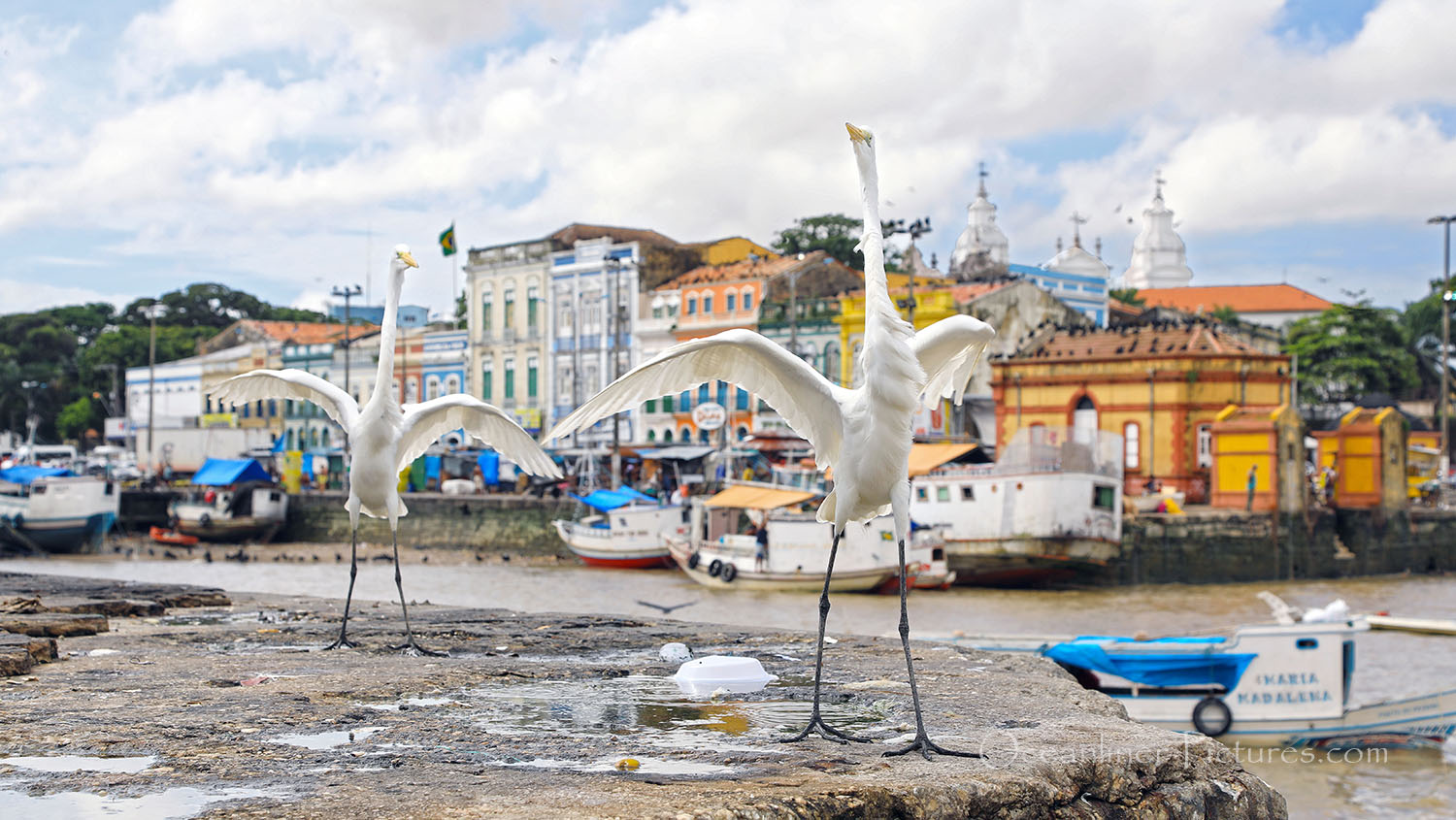 Den Tag verbringen alle angereisten Gäste im Stadthotel Grand Mercure Belém. Nach einem leckeren Frühstück nutze ich die verfügbare Zeit für einen ausgedehnten Rundgang durch die 1,4 Mio. Metropole an der Bucht von Marajó. Die Stadt liegt nicht, wie man vermuten könnte, am Amazonas sondern am Zusammenfluss der beiden Flüsse Rio Guamá und Rio Pará. Obwohl Belém abseits der gängigen Touristenrouten liegt, gibt es eine ganze Reihe interessanter Sehenswürdigkeiten zu bestaunen. Belém ist neben Manaus die wichtigste Stadt am Amazonasgebiet und beeindruckt nicht zuletzt durch ihre Ursprünglichkeit. Touristenläden und Shoppingmalls sucht man hier vergeblich. Mir gefällt das. Zu den markantesten Sehenswürdigkeiten zählen die Kathedrale von Belém, die Festung Forte do Presépio, das Teatro da Paz sowie der Fisch- und Gemüsemarkt Ver-o-Peso.