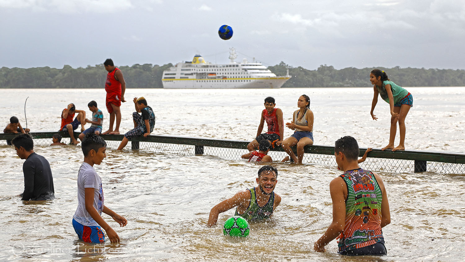 Tourismus gibt es in Afuá praktisch keinen, denn die meisten Kreuzfahrtschiffe machen um dieses malerische Städtchen einen Bogen und steuern das nördlich im Delta gelegene Macapá an. Zur Mittagszeit füllen sich die Plätze in Afuá, besonders das an der Hauptpromenade gelegene Flussschwimmbad wird zum zentralen Treffpunkt für Kinder und Jugendliche. Da ich Afuá während der Amazonas Kreuzfahrt im Jahr 2015 schon einmal besucht habe, genieße ich heute über einen längeren Zeitraum das wunderbare Treiben auf dem größten Platz des Ortes. Einfach herrlich!
