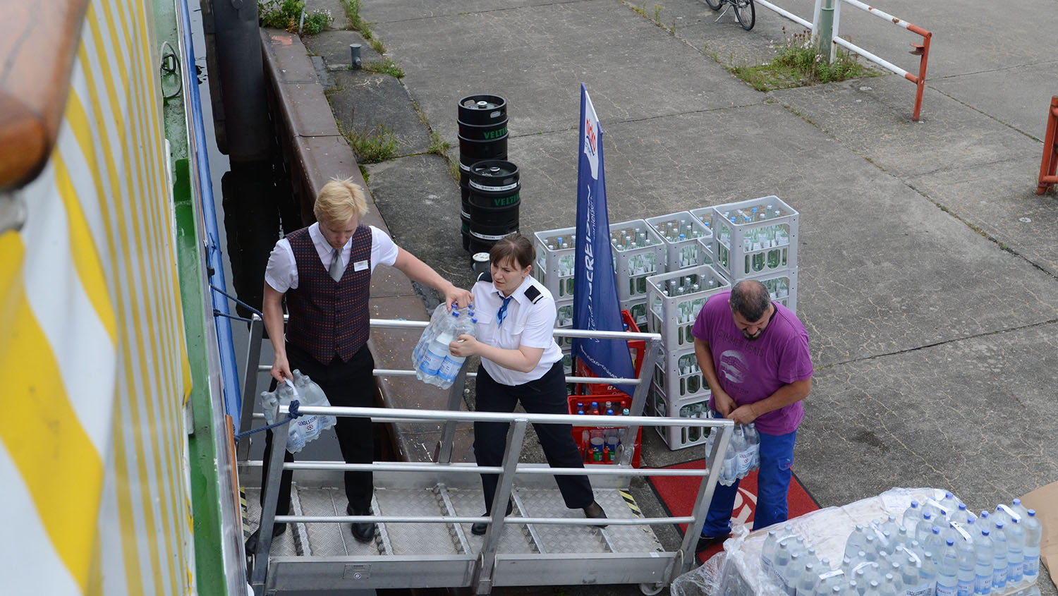 Am nächsten Morgen stehen wir, als ich aufstehe, schon vor meinem persönlichen Highlight der Reise. Langsam nähert sich die 83 Meter lange Katharina von Bora dem Schiffshebewerk in Niederfinow.