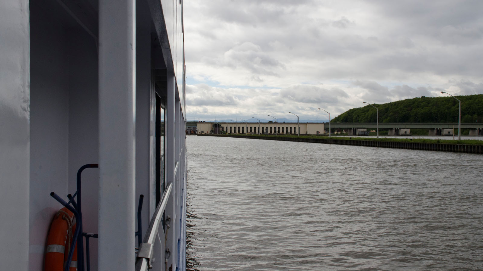 Die erste Nacht an Bord war traumhaft, zeitig bin ich am ersten Tag, nach der anstrengenden Anreise nach Passau, schon früh ins Bett gegangen und total entspannt am Morgen aufgewacht. Der erste Schritt aus dem Bett führte mich direkt zum Fenster, ich öffnete den Vorhang und erblickte am französischen Balkon eine umwerfende Landschaft an der Donau, alles im frischen Grün und vom weiten sah ich schon das niederösterreichische Donaukraftwerk Wallsee-Mitterkirchen. Bereits in der Nacht haben wir die ersten Schleusen durchfahren, da ich aber so gut schlief habe ich nicht eine Schleuse auf dem Weg mitbekommen.