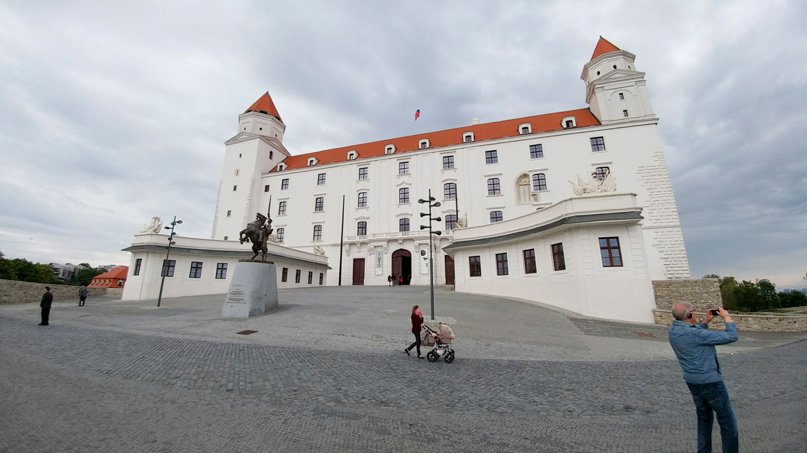 Dort ging es mit dem Bus in Richtung Burg, auf dem Weg dorthin fuhren wir durch das Villenviertel, dass auch von vielen Botschaften gesäumt ist und oben auf dem Berg beim sowjetischen Ehrenmal endet. Der Militärfriedhof wurde 1960 zu Ehren der Soldaten der Roten Armee eingeweiht und hat einen weithin sichtbaren und fast 40 Meter hohen Obelisken in der Mitte. An der Burg Bratislava konnten wir den Bus verlassen und einige Zeit das Areal erkunden. Hier hat man eine atemberaubende Aussicht über die Stadt und weiter bis nach Ungarn und Österreich. Danach ging es nach gut zweieinhalb Stunden zurück zum Schiff, ich nutzte die Zeit noch etwas und erkundete die Stadt auf eigener Faust.