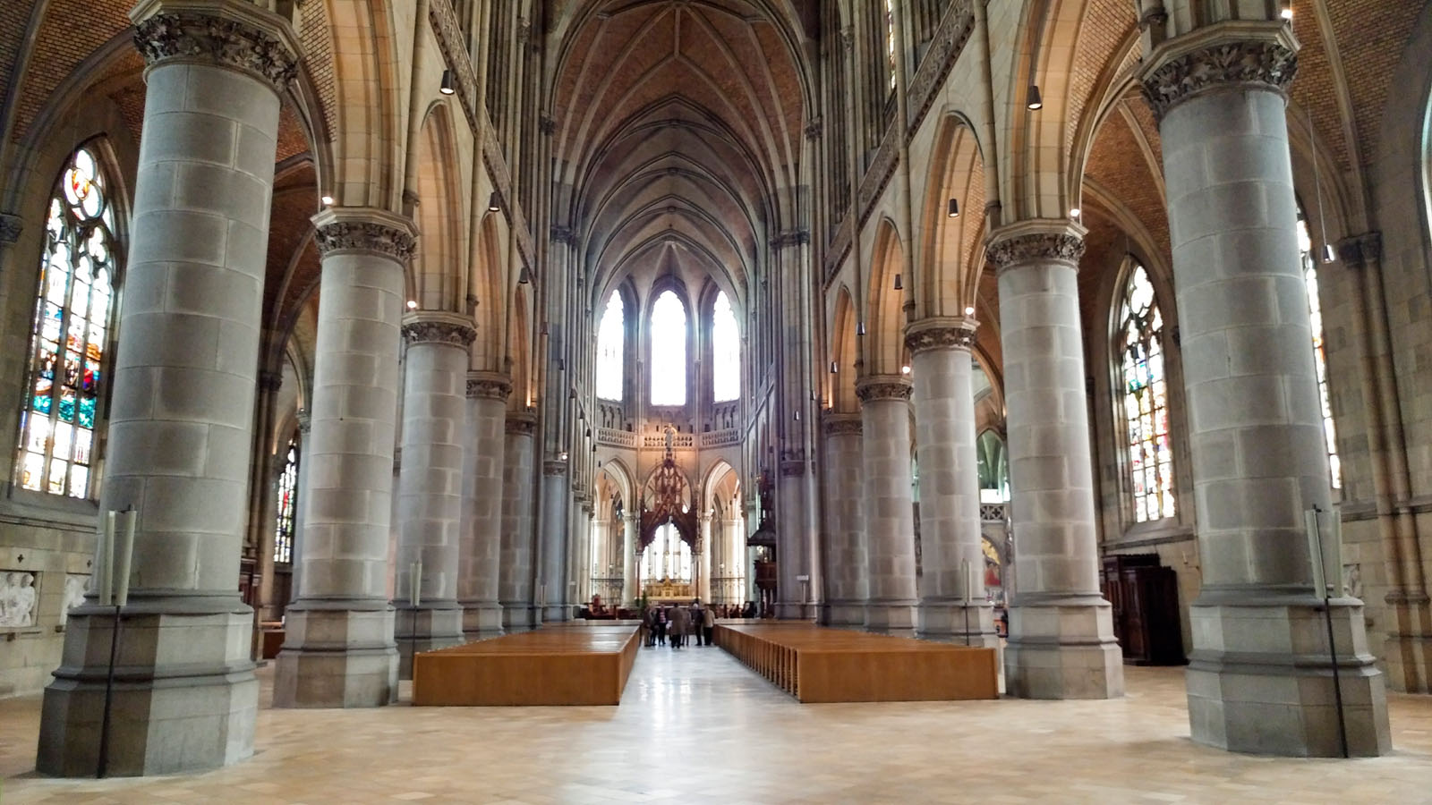Vom Schloss Linz ging es zum Landhaus, das aus dem 16. Jahrhundert stammt und heute Sitz des Landeshauptmannes, des Landtages und der Landesregierung Oberösterreichs ist. Der italienisch inspirierte Arkadenhof ist beim Linz Aufenthalt auf jeden Fall einen Besuch wert, wunderschön. Von hier ging es durch die Heerenstraße direkt zum Linzer Mariendom. Ich war wirklich überrascht vom Gebäude, über eine Nebenstraße kommend sah der große Dom so unscheinbar aus, eine kleine Tür führte uns in das Gebäude. Überwältigend ist die treffende Beschreibung für den 1855 durch den Linzer Bischof Franz Joseph Rudigier gebauten Dom. Der Dom wirkte von Innen sehr dunkel, aber wenn man erst einmal in der Mitte steht ist es doch sehr hell, die historischen Fenster mit den zahlreichen Bildnissen bringen das richtige Licht in den Gottesbau. Kaum vorzustellen, wie das alles gebaut wurde, nicht nur die Höhe beeindruckt, auch die vielen Details am Kirchenbau. Ich war wirklich überwältigt und empfehle jeden einen Besuch des Mariendoms. Getoppt wurde das Ganze beim hinausgehen, am Ausgang ging ich nun rechts auf dem großen Platz vor der Kirche und sah den Dom das erste Mal in voller Pracht von außen.