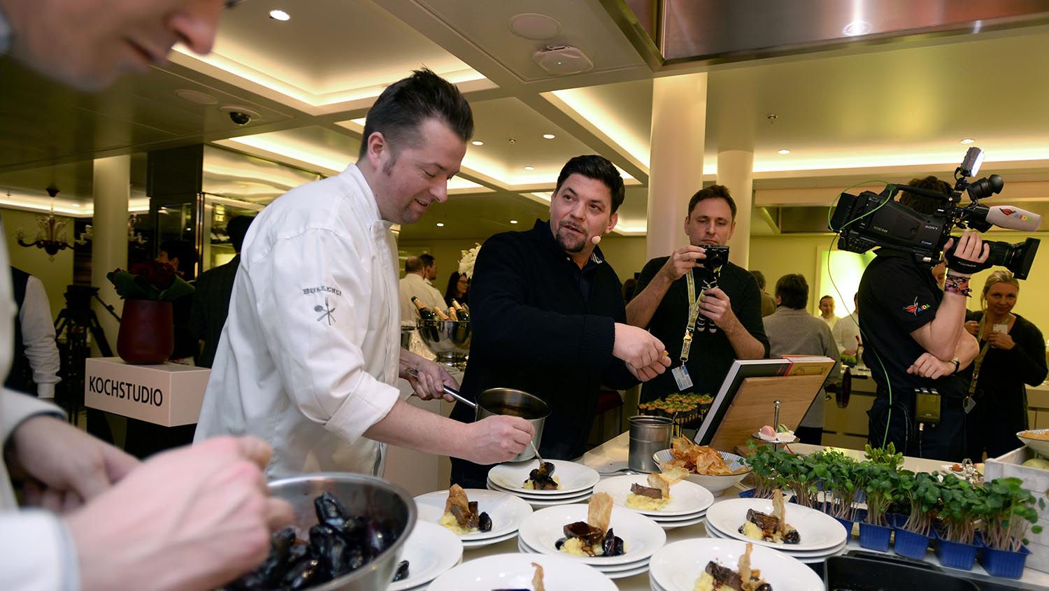 Tim Mälzer beim Anrichten des Geschmorten Ochsenbäckchens. Foto: lenthe/touristik-foto.de