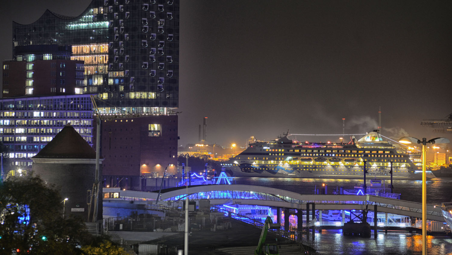 Hamburg, der 17. Oktober 2017 Das Kreuzfahrtschiff AIDAcara startet von Hamburg zu einer 116 Tage dauernden Weltreise. Das ist die erste Weltreise von AIDA Cruises. Die AIDAcara (ehemals AIDA) ist das Mutterschiff der AIDA-Reederei mit Sitz in Rostock. Daher begann die Reise mit einer nächtlichen Hafenrundfahrt und einem Feuerwerk. Foto: lenthe/touristik-foto.de