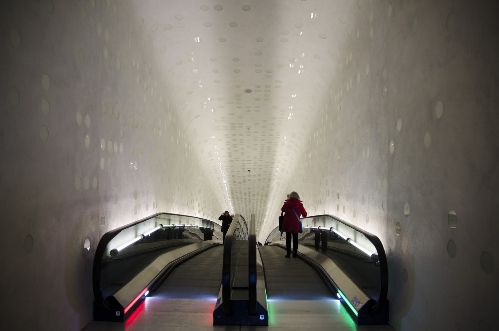 Die große Rolltreppe auf dem Weg nach Unten. Damit ihr die richtige wählt ist sie farblich gekennzeichnet. Foto: bergeest