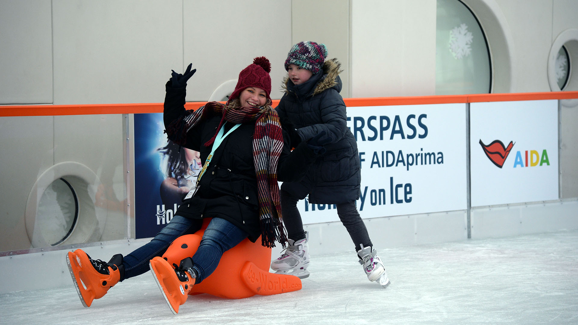 Mehr als zwei Wochen haben zahlreiche Techniker und Mitarbeiter auf dem Sportsdeck der AIDAprima gearbeitet. Nun steht die erste Eisbahn auf einem deutschen Kreuzfahrtschiff. Durch Workshops und einer Kooperation mit der bekannten Eisshow „Holiday on Ice“ werden die Gäste an Bord selbst schnell zu echten Eisprinzessinnen. Einen ausführlichen Artikel zur Eisbahn an Bord der AIDAprima findet ihr hier.