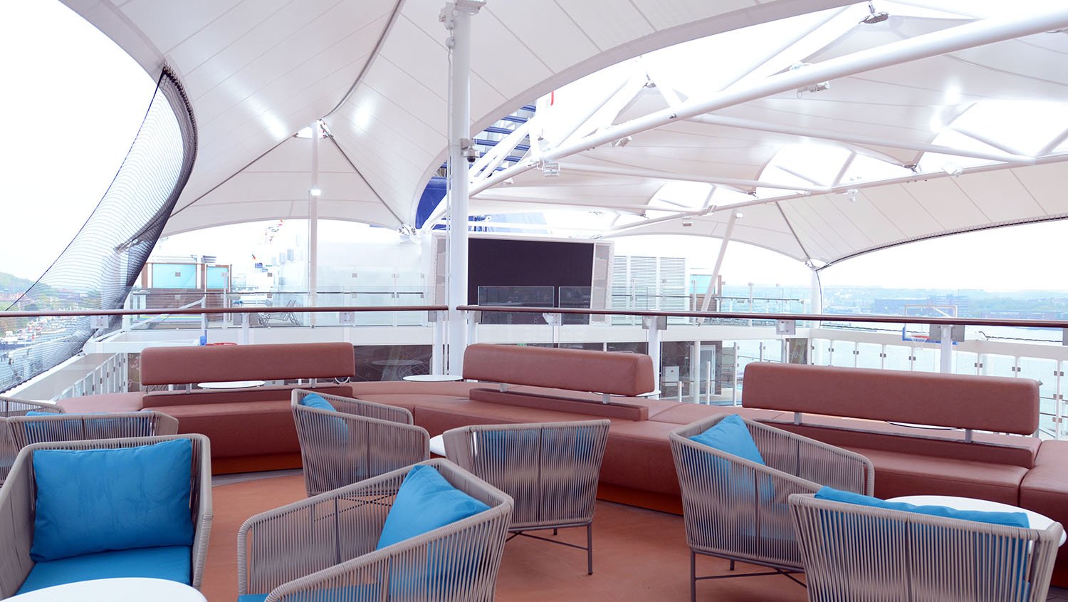 Oberhalb der Sportsarena auf der Mein Schiff 6 gibt es jetzt einen Loungebereich. © lenthe/touristik-foto.de