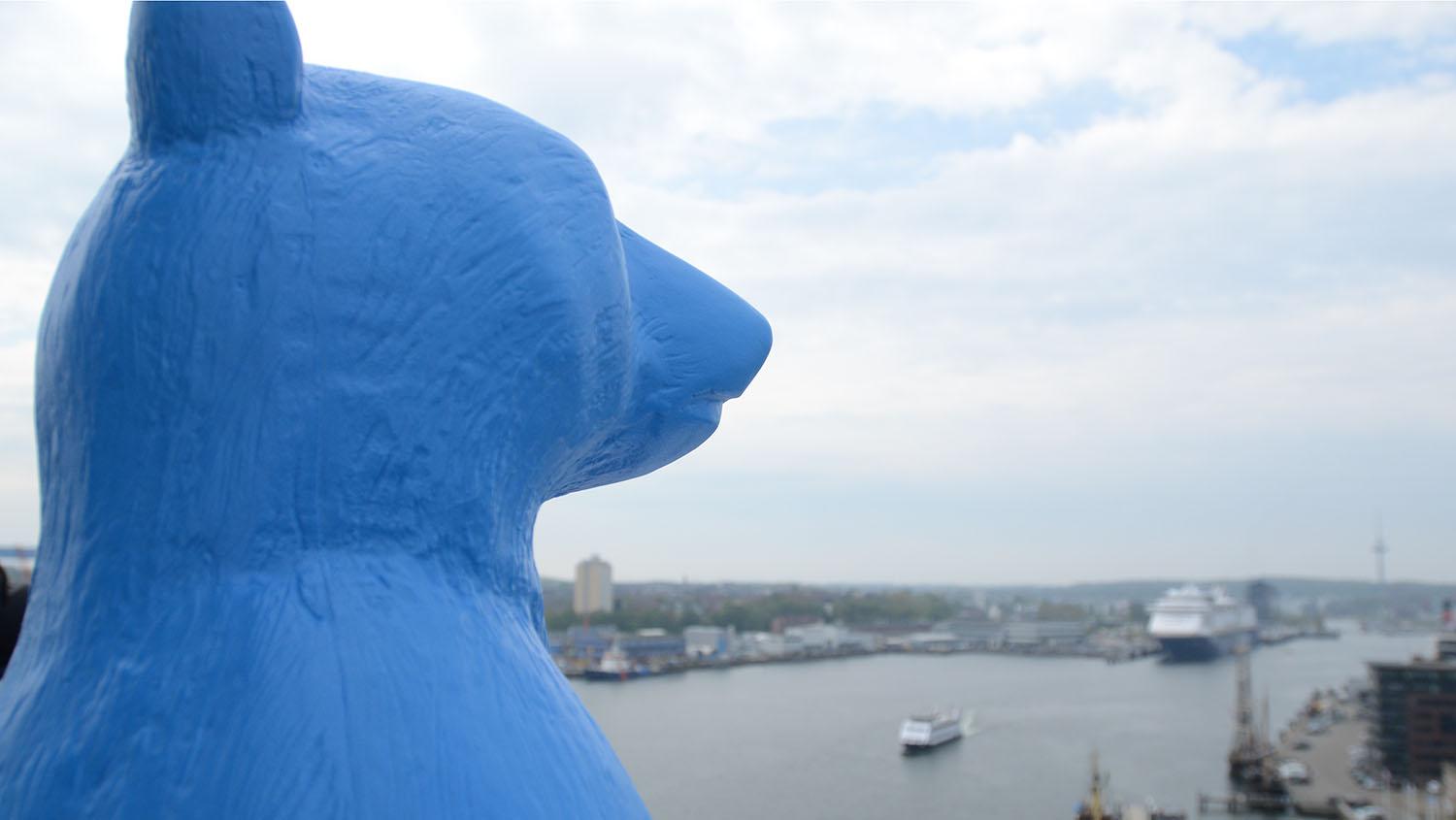 Das Ausgucktierchen des Neubaus von TUI Cruises ist ein blauer Bär. © lenthe/touristik-foto.de