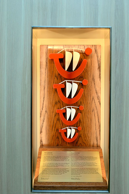 Vier TUI-Schiffe haben die Werftarbeiter von Turku mittlerweile gebaut. "Vier gewinnt" das Gastgeschenk.© lenthe/touristik-foto.de