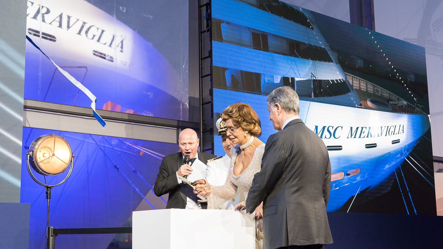 Der Höhepunkt des Abends war die Parade der Offiziere und das Durchschneiden des Bandes durch Sophia Loren. Begleitet durch ein atemberaubendes Feuerwerk wird die Champagnerflasche an der Bordwand des Schiffes zerschellen. Sophia Loren ist seit der Taufe der MSC Lirica im Jahr 2003, bei der sie zum ersten Mal als Taufpatin fungierte, eng mit MSC verbunden. Sie begleitete das Wachstum der MSC Flotte und wurde Taufpatin jedes neuen Schiffes.