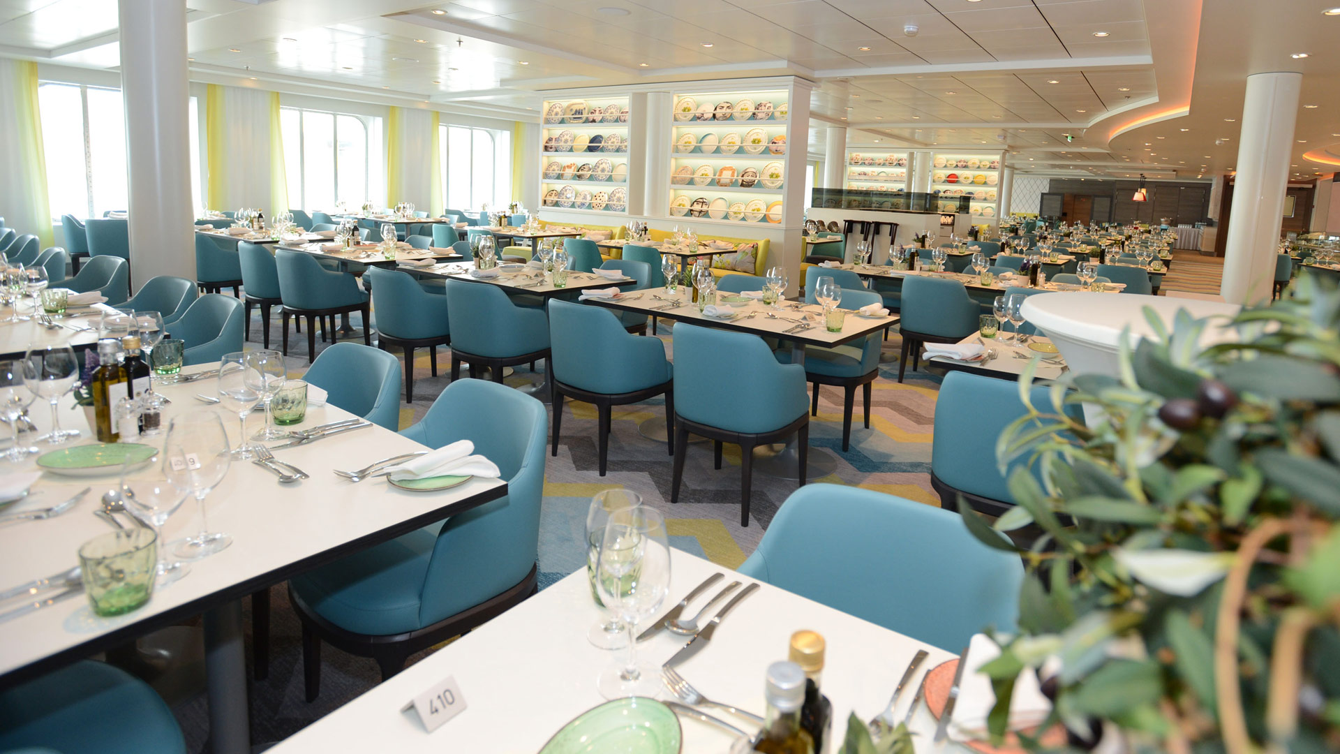 Freibad-Feeling auch deshalb, weil der Indoor-Pool verschwunden ist. Auf der Fünf gibt es dafür einen weiteren, wenn auch kleineren Außenpool. Dieser eignet sich vor allem zum chillen, auf den teilweise im Wasser angebrachten Liegestühlen. Es entsteht hier der Eindruck einer modernen Grotte, mit ganz viel Ruhe und Platz zum entspannen. Maximal 25 Gäste sollen den Bereich auf einmal nutzen können, so steht es zumindest in der Poolordnung. Der Außenpool lässt aber auch befürchten, dass wir das Schiff in Nordeuropa künftig nicht mehr so oft zu sehen bekommen. Es ist eher für wärmere Gefilde ausgelegt, also im Sommer Mittelmeer und im Winter die Karibik. Mehr in unserer Bildergalerie.